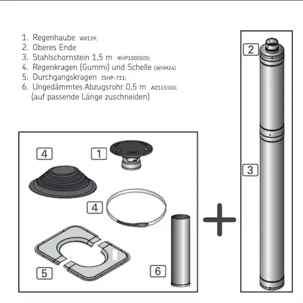 Einfache Installation: Die Installation dieses Schornsteins ist denkbar einfach. Das Set enthält alles, was Sie benötigen, einschließlich eines nicht isolierten Rauchrohrs, einer Regenkappe, einem Gummi-Regenflansch, einem Montageset für den Regenflansch, einem Edelstahl-Durchführungsflansch für die Decke, Durchführungsisolierung und einem Schutz. Sie sparen Zeit und Mühe bei der Einrichtung Ihrer Sauna.