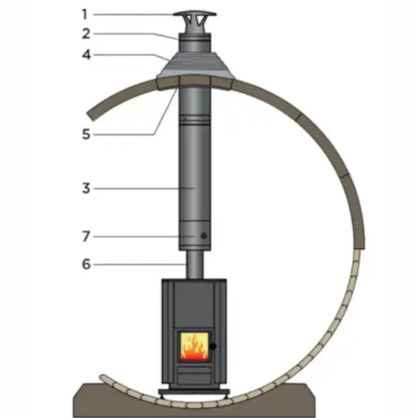 Erweiterbarkeit: Dank eines ausgeklügelten Mechanismus kann der Schornstein problemlos verlängert werden. Sie können die Höhe an die Bedürfnisse Ihrer Sauna anpassen.