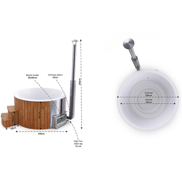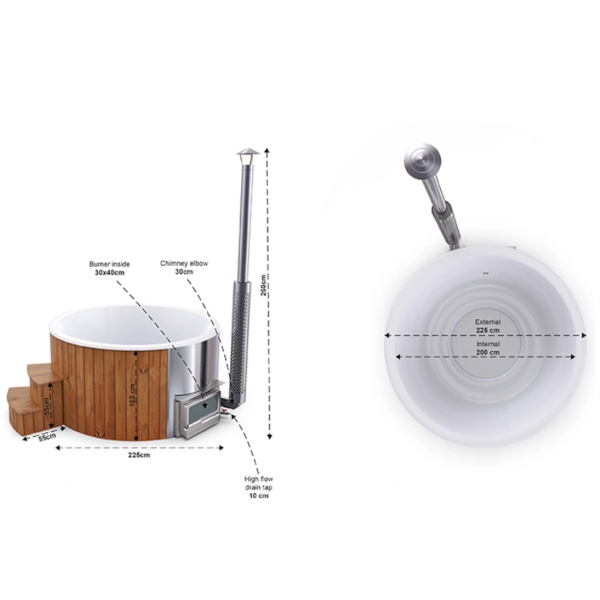 Hot Tub aus Acryl mit integriertem Holzofen konfigurierbar 200×200 (Basic)