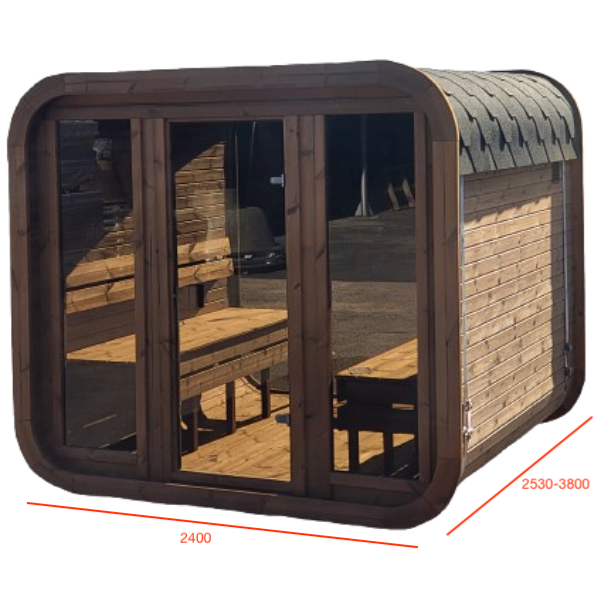 Saunahaus DELUXE BOX – mit zwei großen Panorama Fenstern.