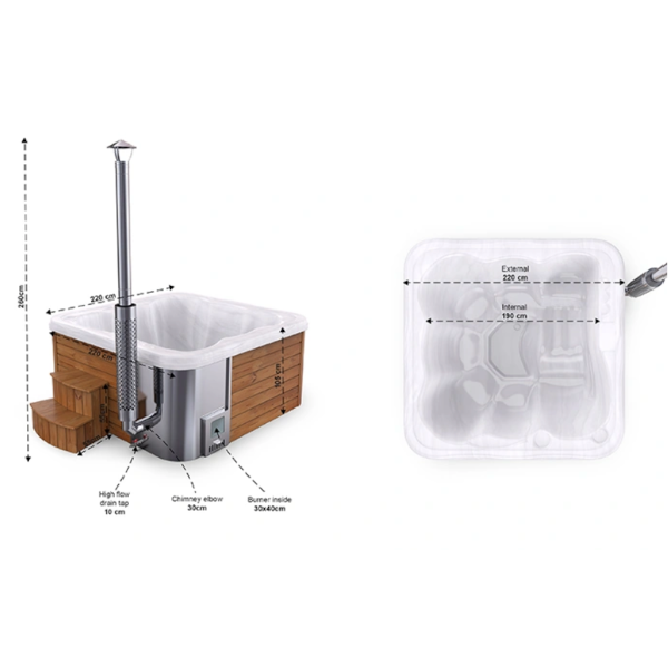 Hot Tub aus Acryl mit integriertem Holzofen konfigurierbar 200×200 (Basic)