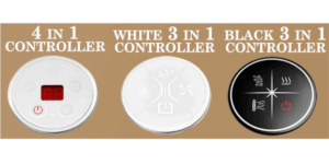 Holzofen integriert – 30 kW: hohe Bauform, etwas mehr Leistung, nimmt keinen Platz in der Wanne, da ergonomisch geformt.